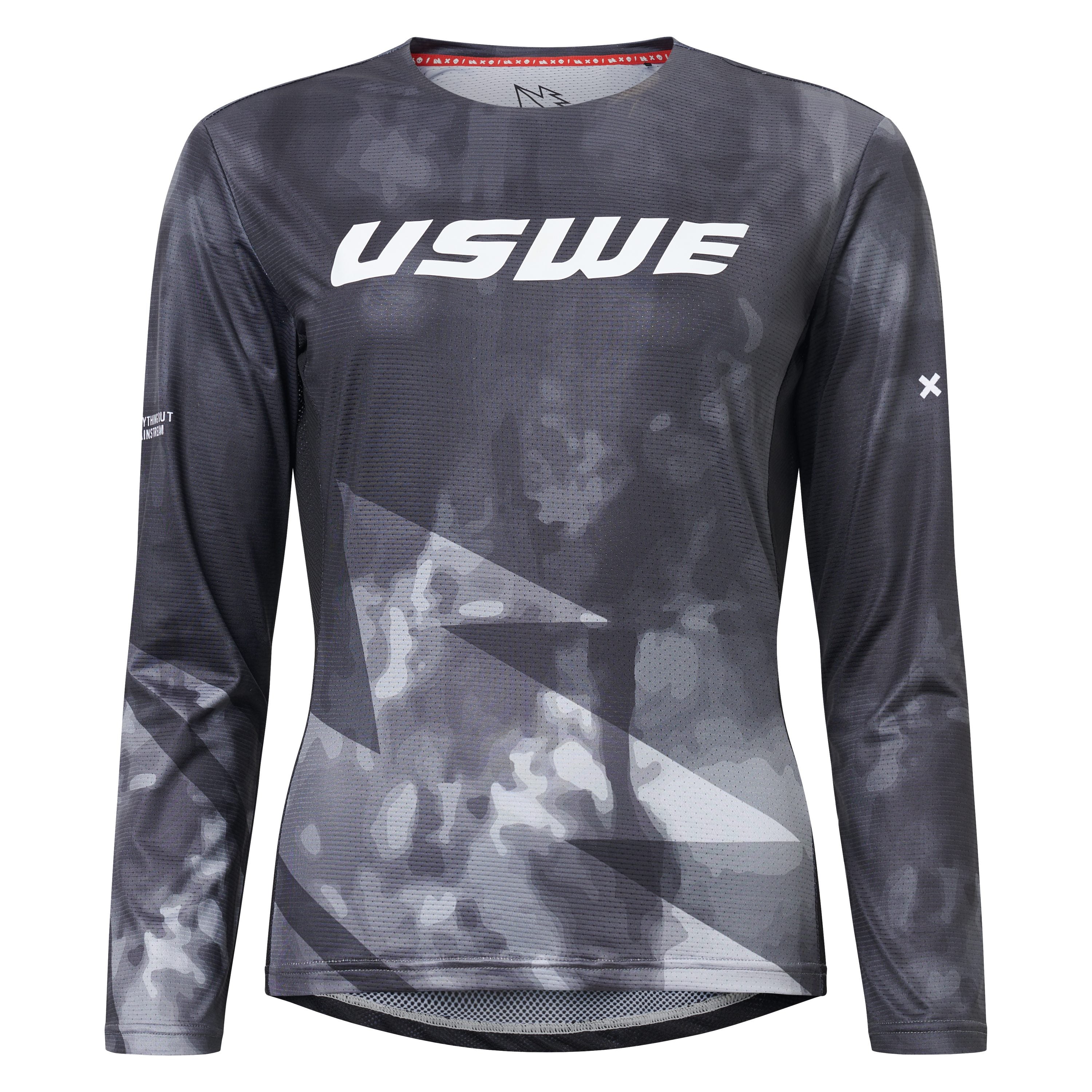 Mesh panel under the arms and on the back to maximize the airy feel and a bonded neck line for a minimalistic race look. Smoke graphics with the USWE symbol all over the front gives the jersey the kick ass look it deserves. Ikons silicone print on the inside of the lower back.