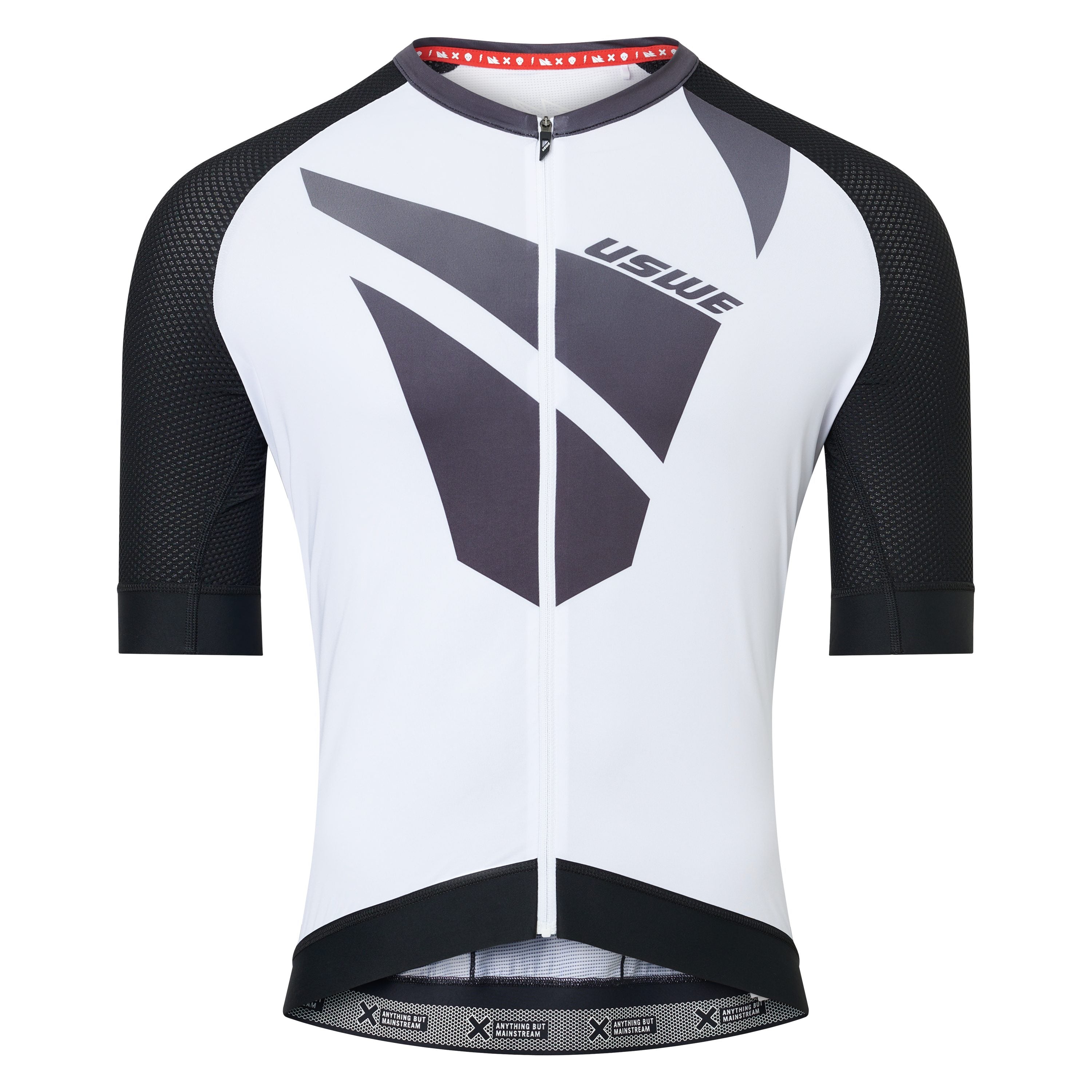 We designed the Skarp Jersey for the riders looking for the absolute best gear to help them cross the finish line. This jersey comes with sleeve length to support the arms and mesh to keep them breathable. The sleeve hems ends with a 45mm silicon elastics printed with the statement that says it all ”X-Anything but Mainstream”. Combine this jersey with the Skarp Bib Shorts for a 100% race look and feel.