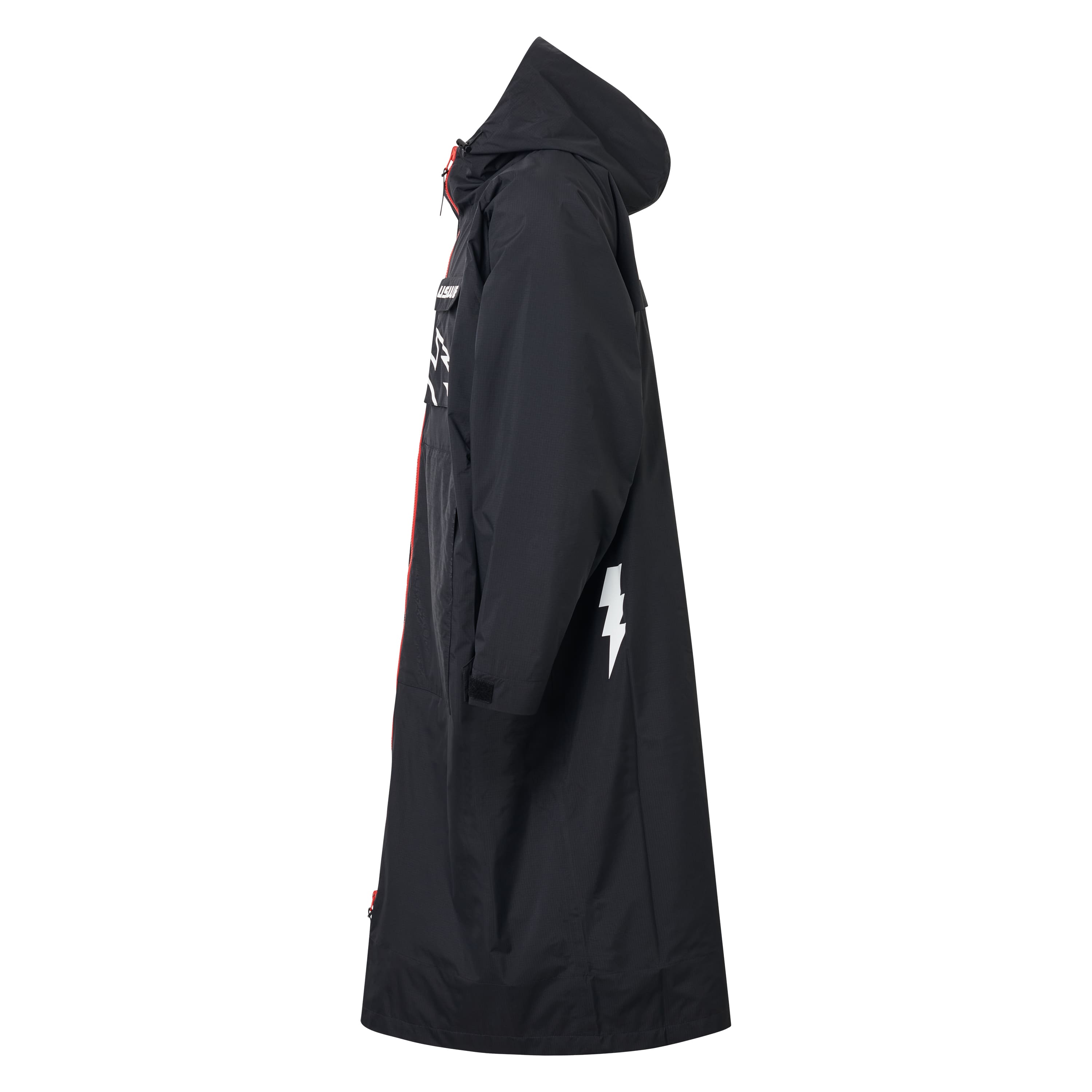 Have you ever been standing in the rain before a race, freezing your ass off? Shivering, trying to focus. Trying to stay motivated. This waterproof robe keeps you warm, dry and most important, it makes you look and move lite a pro.